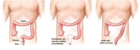 El tratamiento consiste en la extirpación del segmento de recto afectado por el tumor y empalme de los extremos que han quedado separados o la amputación rectal si el tumor está ubicado en los primeros centimetros próximos al ano