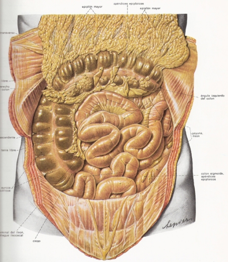 El aparato digestivo incluye el estómago, el intestino delgado y el intestino grueso.